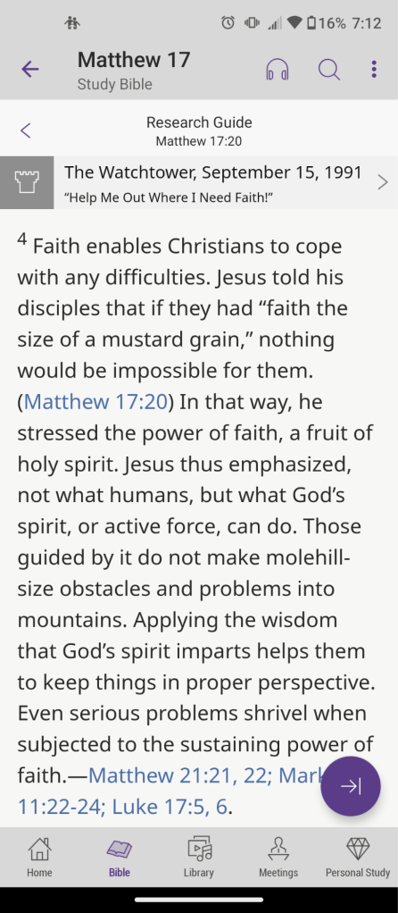 While doing my personal bible reading in Matthew, I came across this paragraph in a Watchtower article: