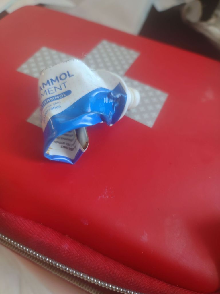 Now regarding the pic above…… Sunday when I woke up, I made a beeline for the bathroom to shower. When I finished and came out, my Lori had arranged her bed with my chucks, bandages, first aid kit etc so that I could get myself together. Beyond that however, for my ointments that were running low, such as with this tube of ichthammol ointment, she took the time to roll it up so that I could get the remainder out with ease. WHO DOES THAT???!!!!! Hers is a heart bigger than I can actually comprehend. I’m so blessed to have her as my sister.